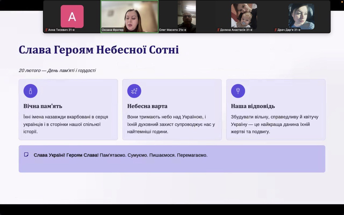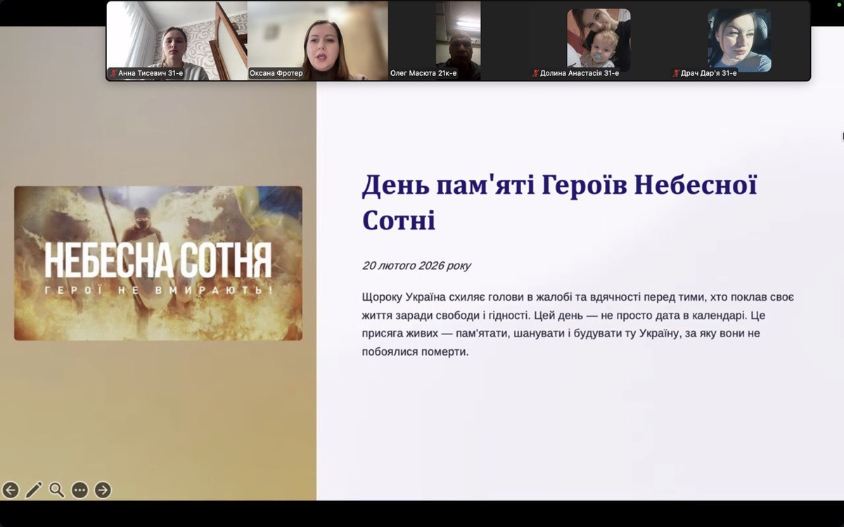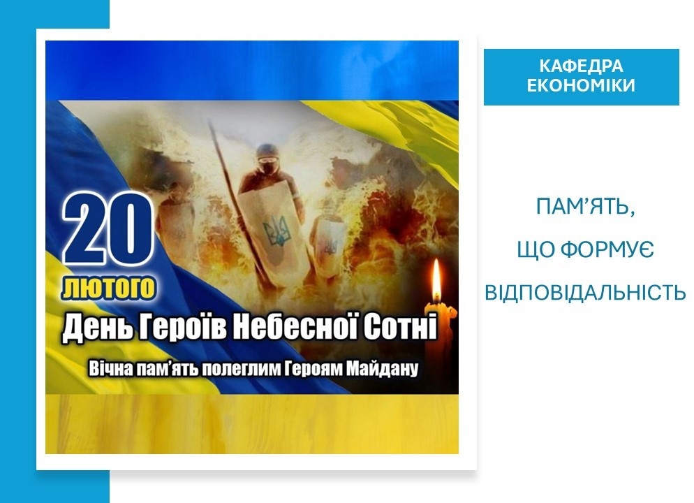 20 лютого 2026 року на кафедрі економіки відбувся виховний захід, присвячений Дню пам’яті Героїв Небесної Сотні. Захід пройшов у онлайн-форматі.
