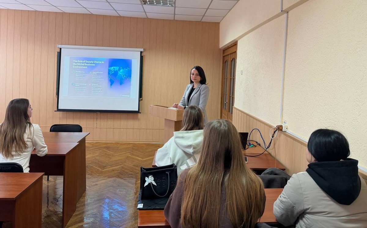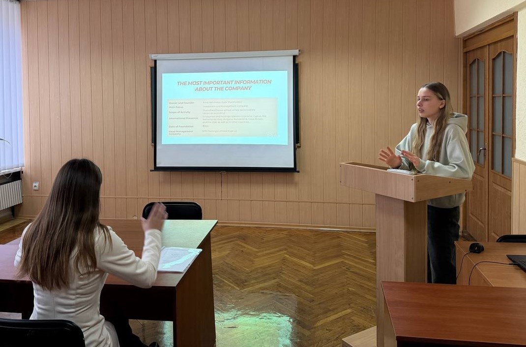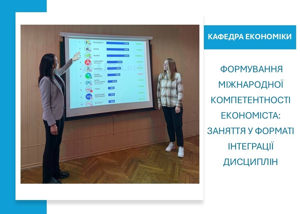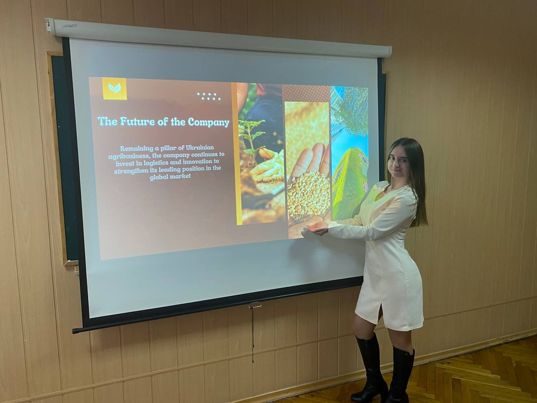 Підготовка конкурентоспроможних фахівців сучасної економіки передбачає не лише глибокі теоретичні знання, а й уміння працювати в міжнародному професійному середовищі. Саме тому для студентів-економістів проведено інтегроване (бінарне) заняття, яке поєднало матеріал з двох дисциплін: «Основи міжнародного бізнесу», (викладач – Людмила СМОЛІЙ, тема «Транснаціональні компанії в системі міжнародних відносин») та «Ділова іноземна мова для економістів» (викладач – Зоя НЕПОЧАТЕНКО, тема: «Organization. Structure of the organization»). Заняття дало змогу студентам сформувати цілісне уявлення про глобальні економічні процеси та вдосконалити навички професійної комунікації англійською мовою. Завдяки інтеграції економічного та мовного компонентів студенти мали можливість закріпити теоретичні знання у практичних кейсах міжнародного бізнесу, презентуючи результати англійською.