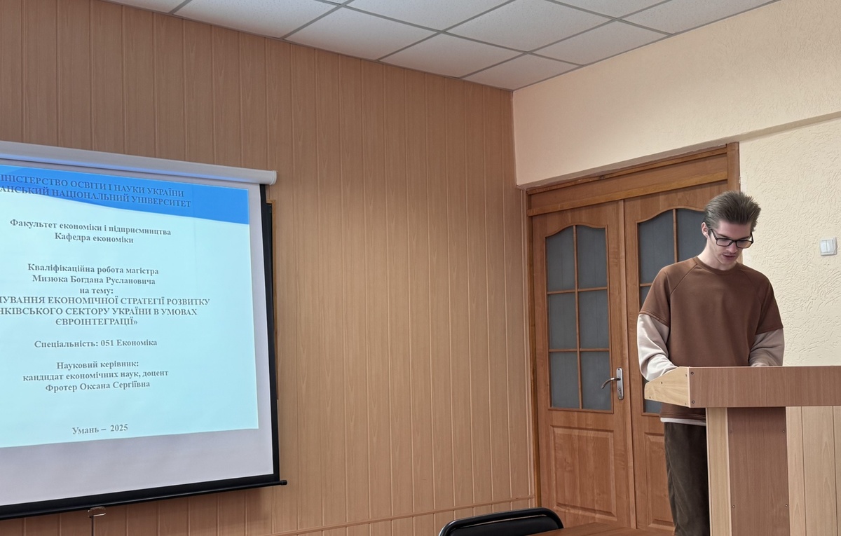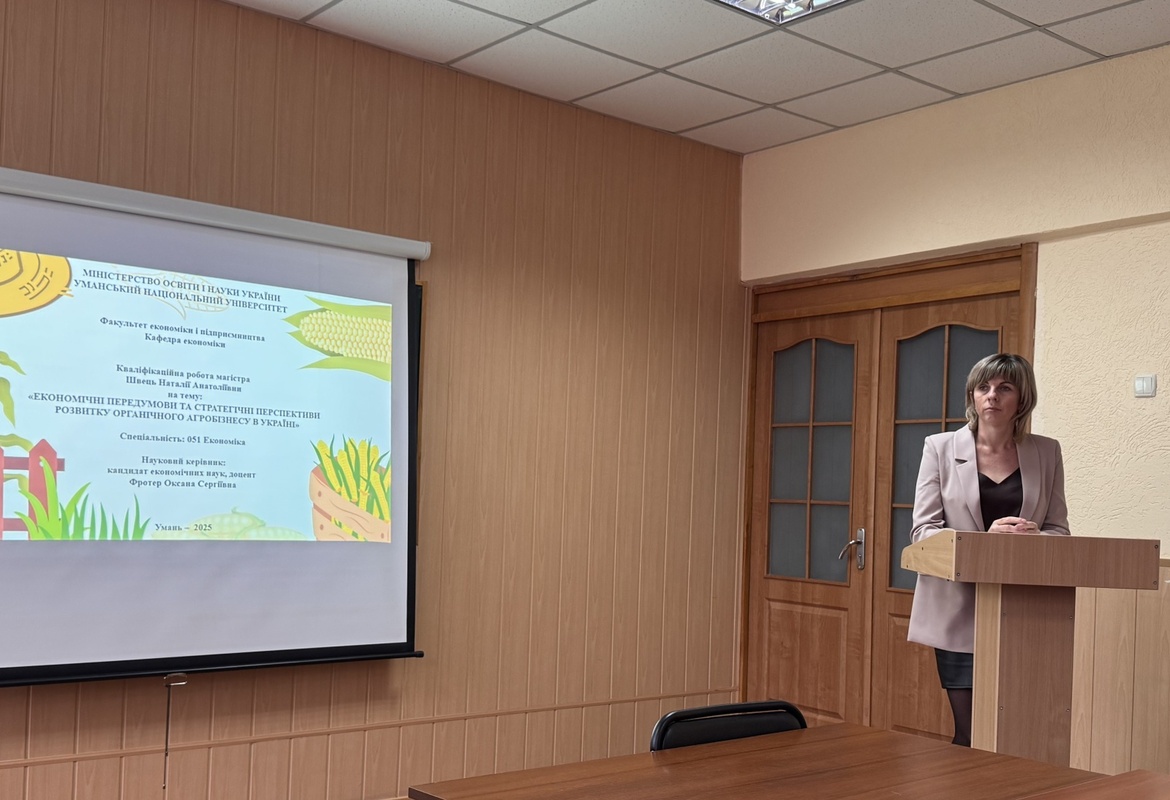 На кафедрі економіки Уманського національного університету відбулися підсумкові засідання екзаменаційної комісії із захисту кваліфікаційних робіт здобувачів освітнього ступеня «Магістр» за спеціальністю 051 «Економіка» освітньої програми «Бізнес-економіка». Захисти стали логічним завершенням підготовки та важливим кроком у професійному становленні майбутніх економістів.