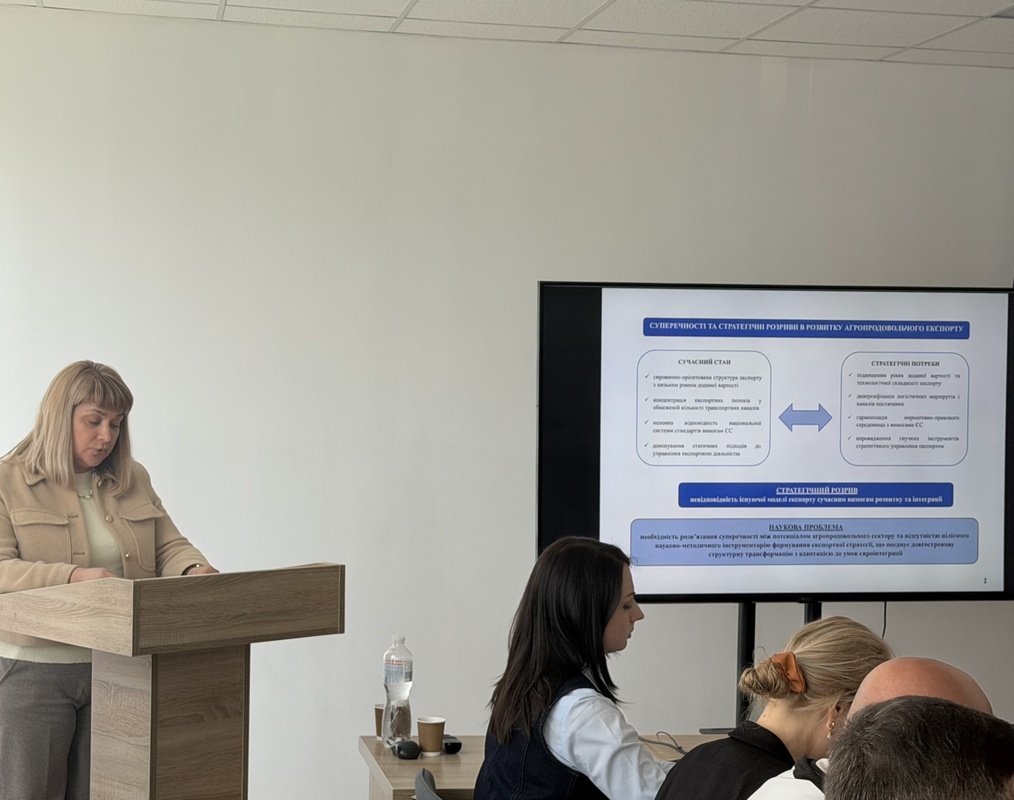 Під час виступу було висвітлено теоретичні та практичні аспекти формування експортної стратегії агропродовольчого сектору України, обґрунтовано сучасні виклики та можливості в умовах євроінтеграції, а також запропоновано конкретні рекомендації щодо підвищення ефективності зовнішньоекономічної діяльності. Активне обговорення результатів дослідження засвідчило актуальність обраної тематики та її практичну значущість. У дискусії взяли участь науковий керівник, рецензенти - к.е.н., доцент ПІТЕЛЬ ніна Якимівна та к.е.н., доцент КЛИМЕНКО Лідія Василівна, а також інші учасники зібрання, які відзначили високий рівень підготовки здобувача, логічність викладу матеріалу та обґрунтованість отриманих результатів.