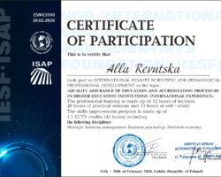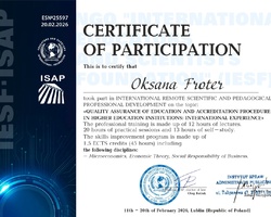 Доцент кафедри економіки Алла РЕВУЦЬКА та Оксана ФРОТЕР успішно завершили міжнародне науково-педагогічне підвищення кваліфікації у онлайн форматі на тему: «Забезпечення якості освіти та процедура акредитації у закладах вищої освіти: міжнародний досвід».