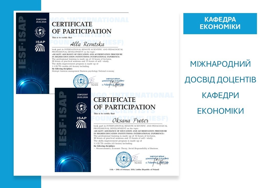 Підвищення кваліфікації як запорука якості: міжнародний досвід викладачів кафедри економіки