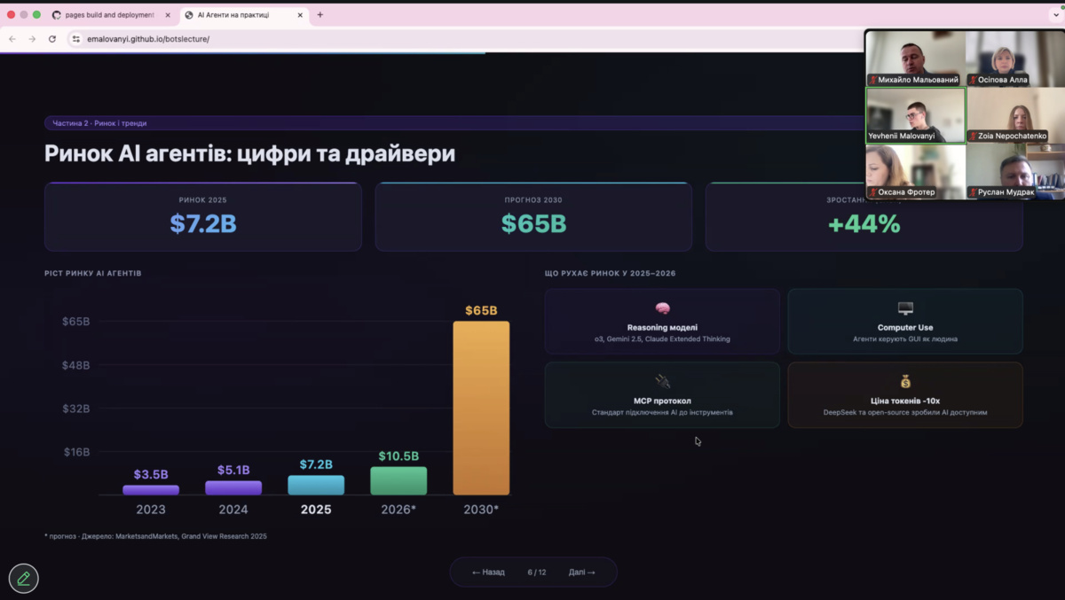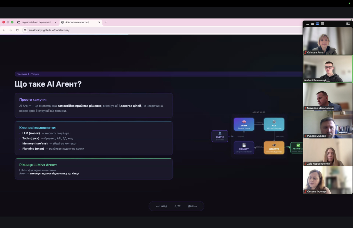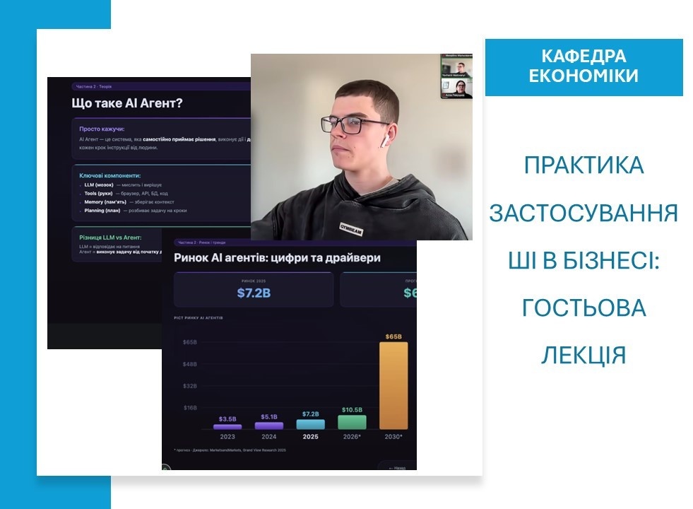 Тема лекції – «AI-агенти на практиці: як штучний інтелект змінює роботу компаній – від теорії до реальних кейсів» – викликала жвавий інтерес серед студентів і викладачів кафедри, адже органічно поєднала актуальні теоретичні підходи з практичними бізнес підходами.