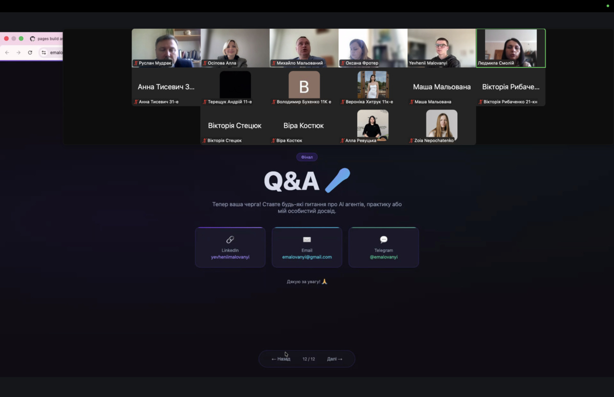 Практична спрямованість лекції дозволила учасникам глибше усвідомити реальні можливості застосування технологій штучного інтелекту в майбутній професійній діяльності та розширити розуміння того, як сучасні компанії інтегрують інтелектуальні рішення у свої бізнес-процеси.
